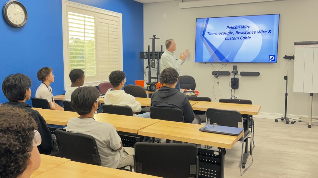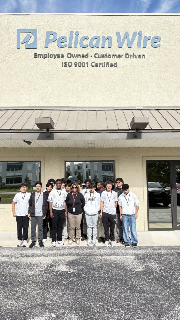 Pelican Wire, a Naples, Florida based Employee-Owned custom wire manufacturer, hosted a number of Engineering & Science students from Golden Gate High School and their teachers for an introduction to Pelican Wire and our product line, with some hands-on examples of various wire solutions manufactured in the building and their real-world applications.