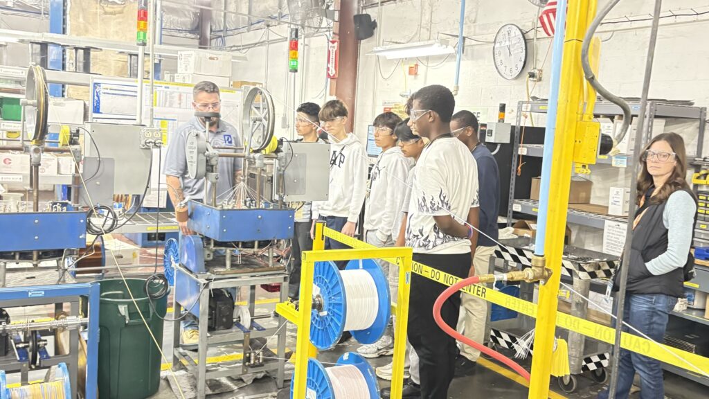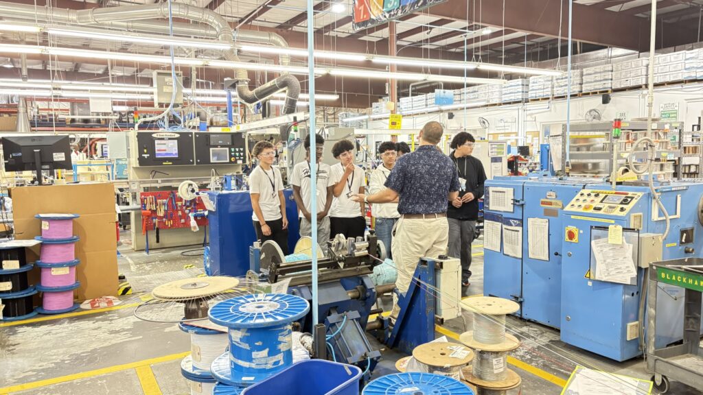 After a guided plant tour, with stops at each manufacturing capability department, such as Extrusion, Braid, or Tape, students learned the ‘How & Why’ behind various product solutions and manufacturing processes.